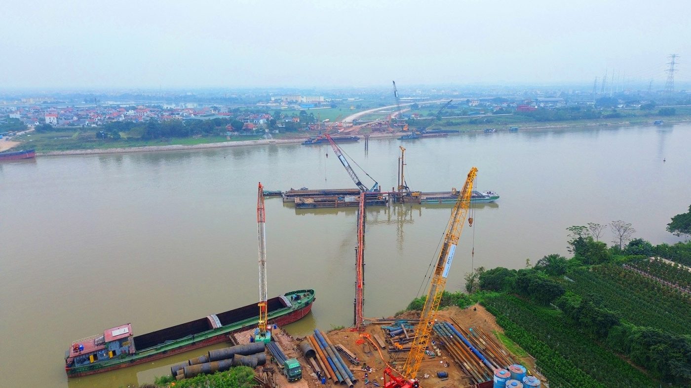 Dự án cầu Mễ Sở bắc qua sông Hồng, kết nối trực tiếp giữa Hà Nội và Hưng Yên, đang được đẩy mạnh thi công nhằm sớm hoàn thiện tuyến Vành đai 4 – Vùng Thủ đô.